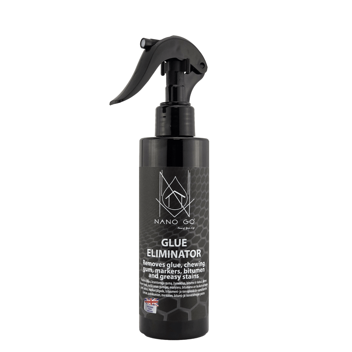 NANO GO Glue Eliminator – универсальный растворитель для удаления клея, чернил, маркера, жвачки, битума, клеевых остатков, дёгтя, натуральных смол и жировых пятен. Цитрусовая формула на основе d-лимонена эффективно растворяет загрязнения без повреждения поверхности.